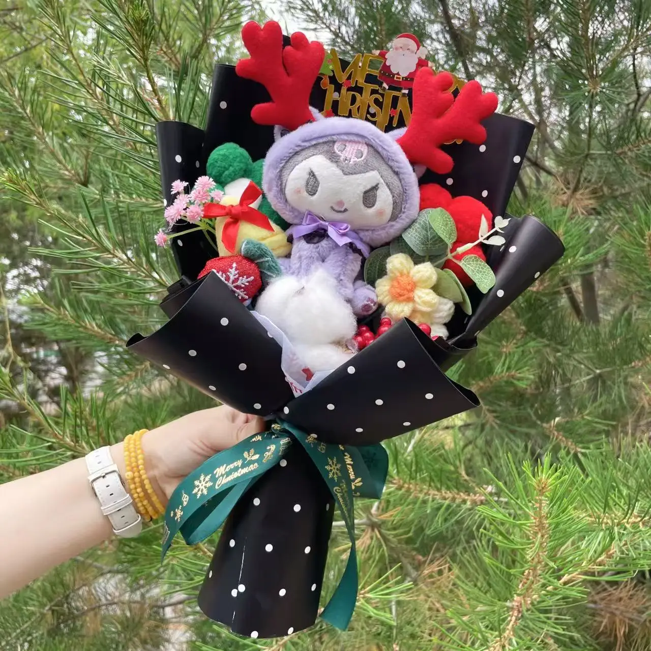 Cartoon Anime Hallowmas My Melody Kouromi Stuffed Animals Plush Toy With Roses Creative Bouquets Christmas Hallowmas Gifts