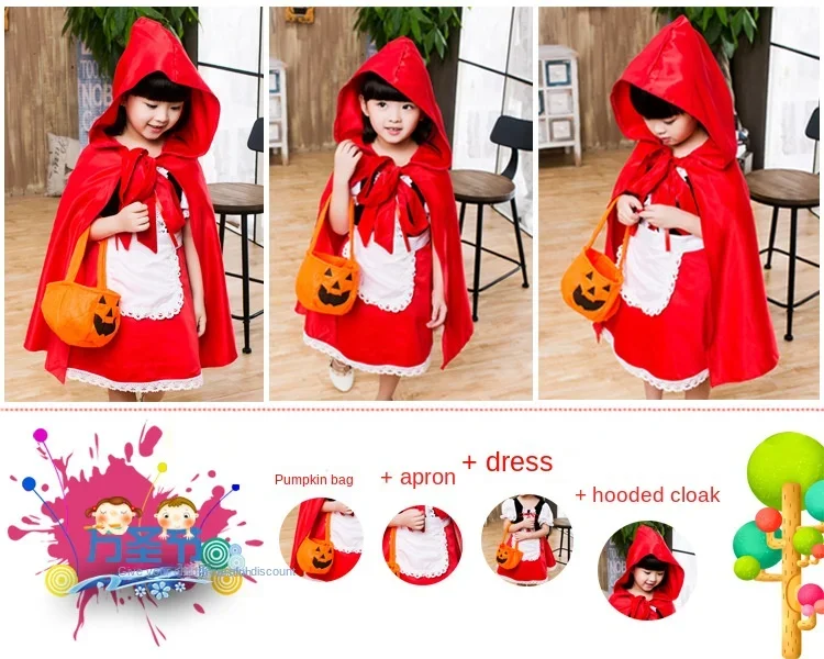 Girl Halloween Cosplay 2PCS Little Red Riding Hood Dress With Cloak Kids Lace Flower Party Stage Show Clothing Set