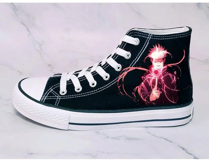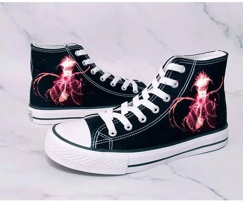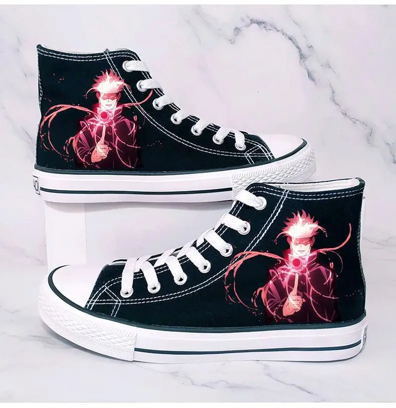 Jujutsu Kaisen Satoru Gojo Anime Sneakers High Top Canvas Shoes Anime Graffiti Breathable Cool Street Sneakers Causal Shoes