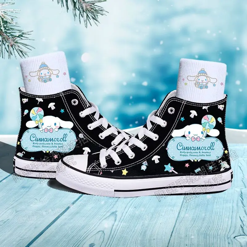 Kawaii Sanrio Cinnamoroll Shoes High Top Canvas Shoes Anime Cartoon Men and Women Casual Shoes Festival Gift