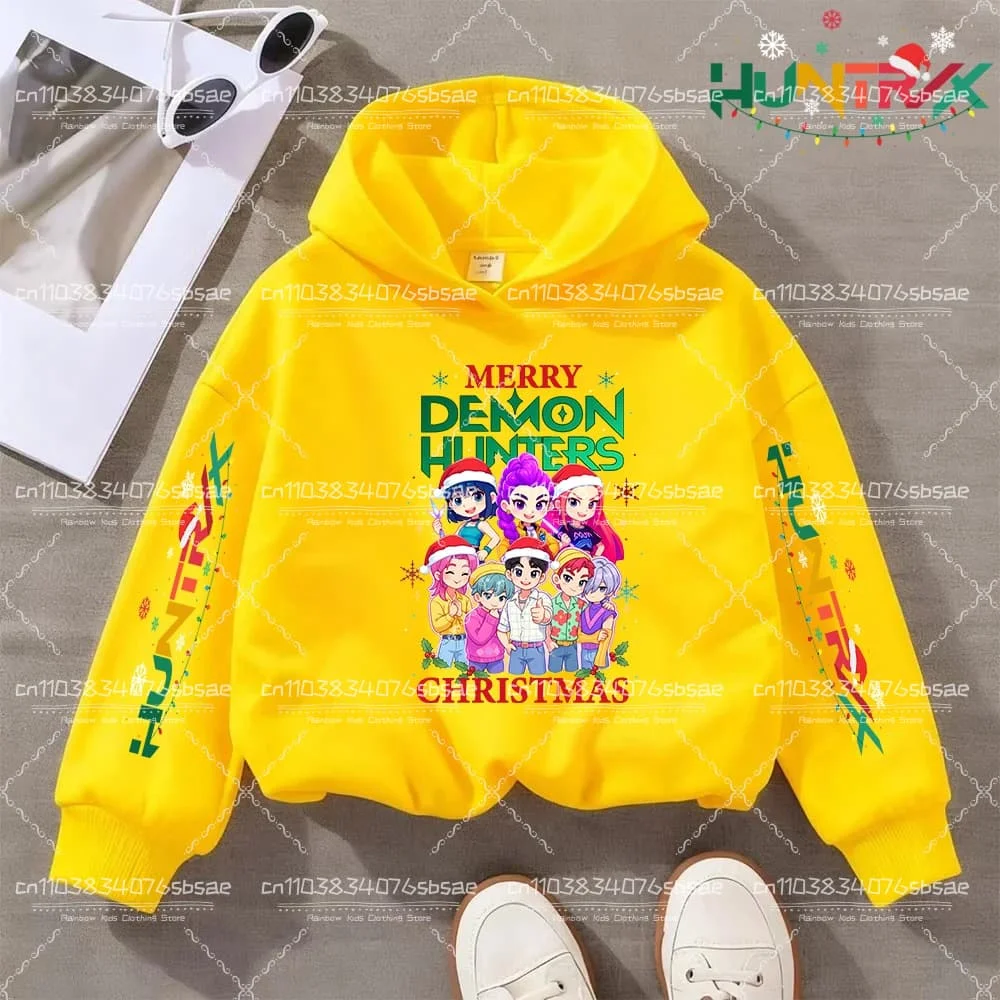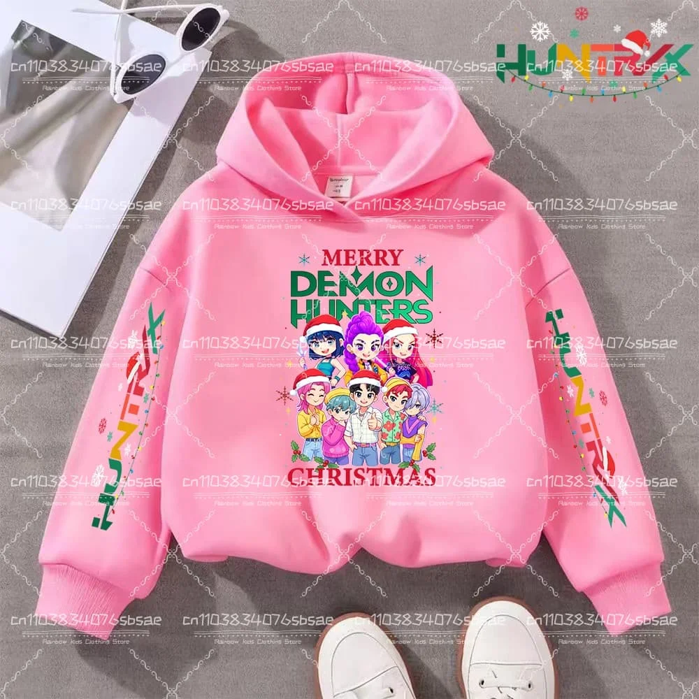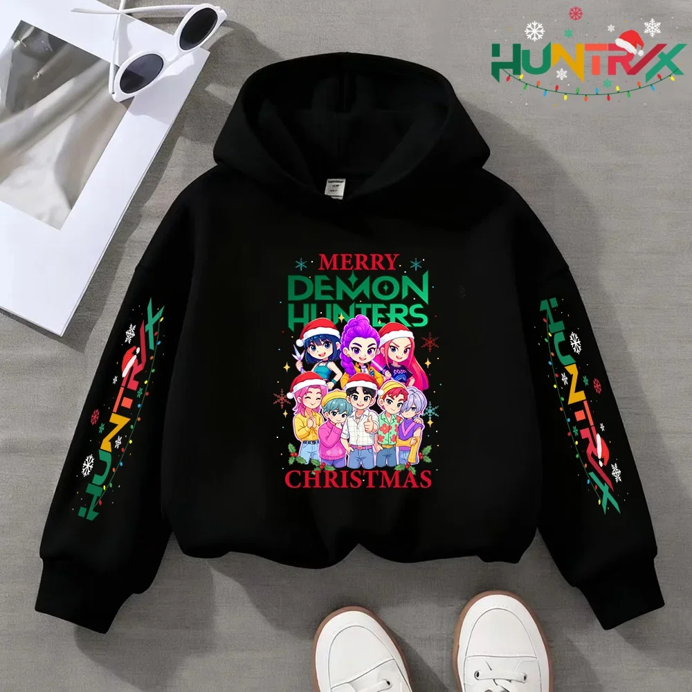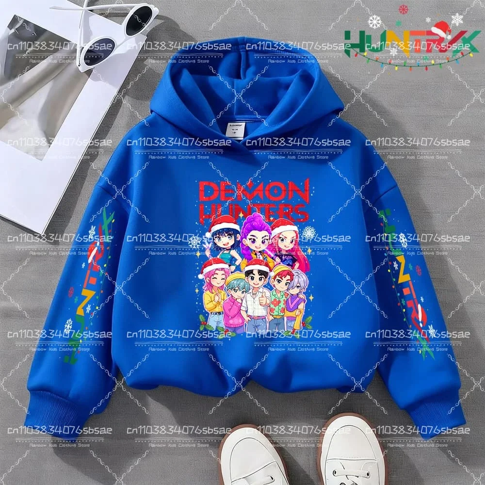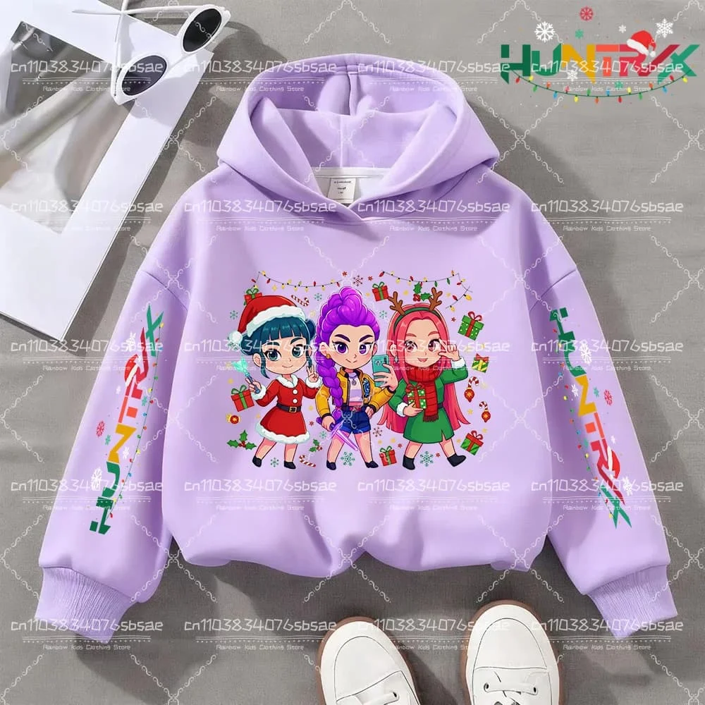 KPop Demon Hunter Christmas Cartoon Girls Boy Hooded Sweatshirt Warm Children's Fashion Casual Tops Casual Girls Clothing Gift