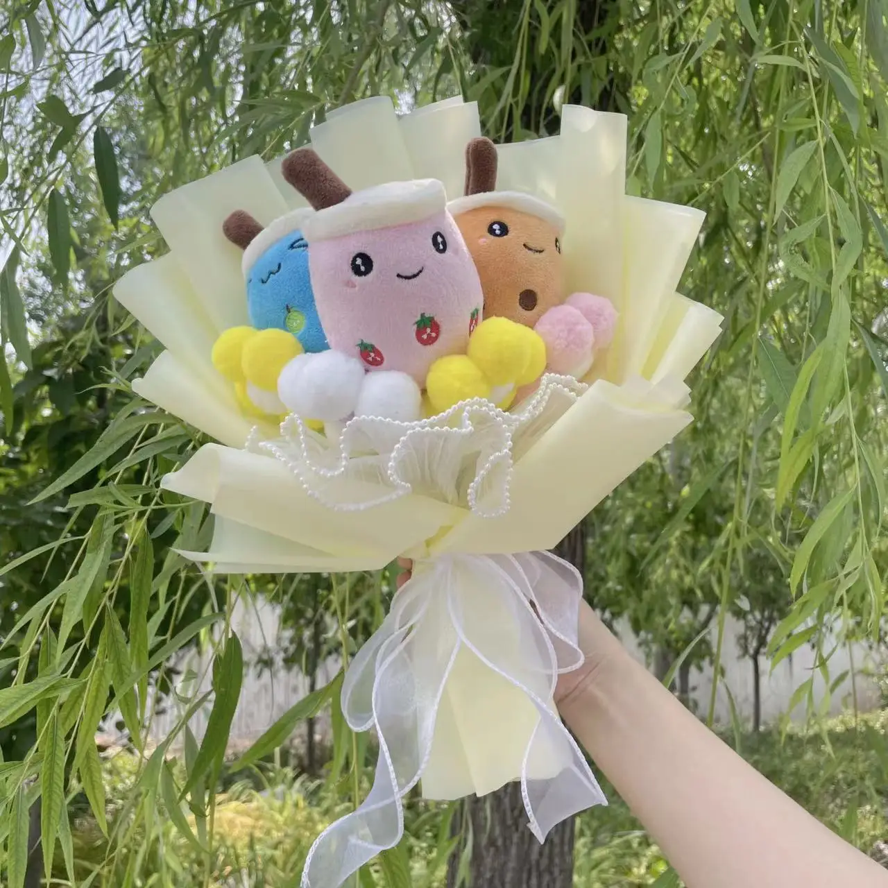 Real-life bubble tea plush toy Flower bouquets stuffed food milk tea soft doll boba Christmas Graduation birthday Gifts