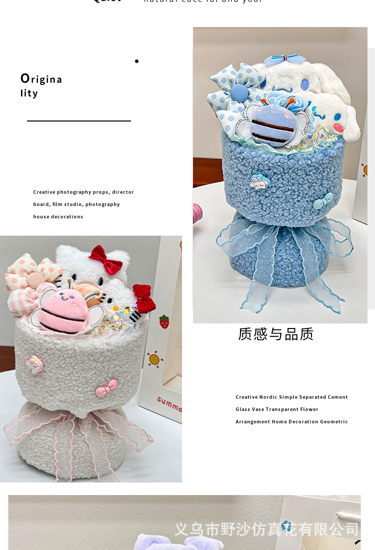 Sanrio Anime Plush Bouquet Kuromi Melody Hellokitty Kawaii Birthday Children Gift