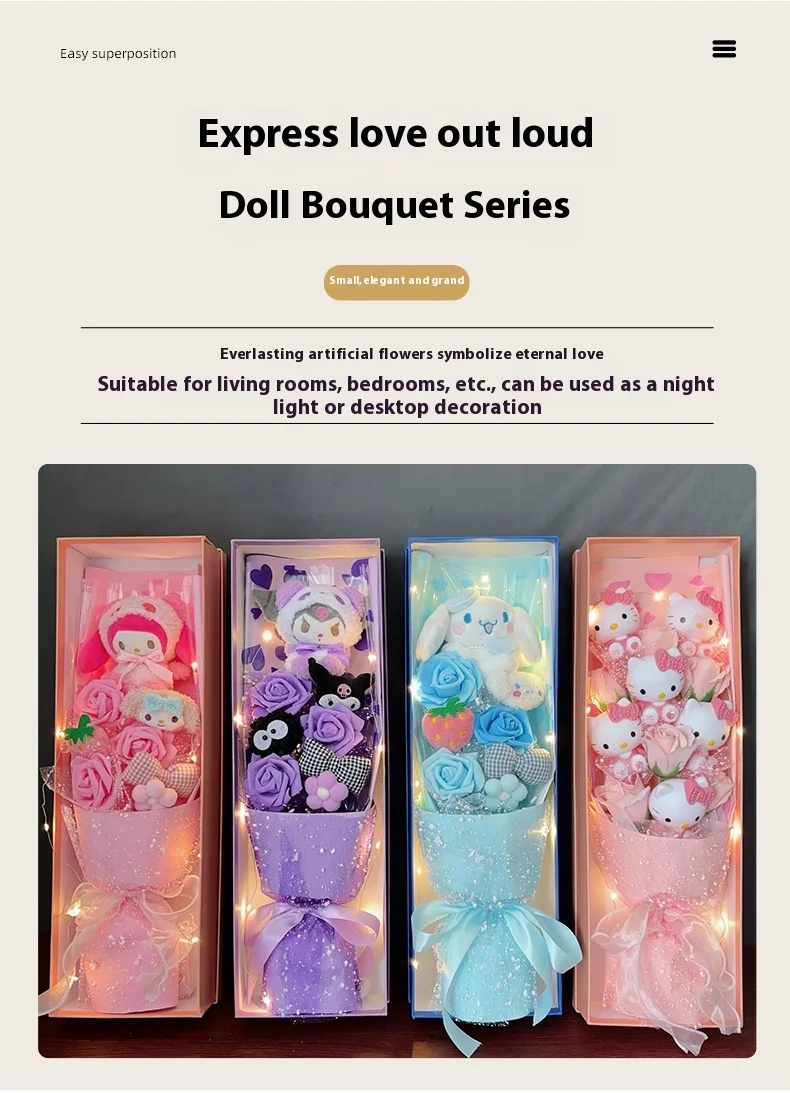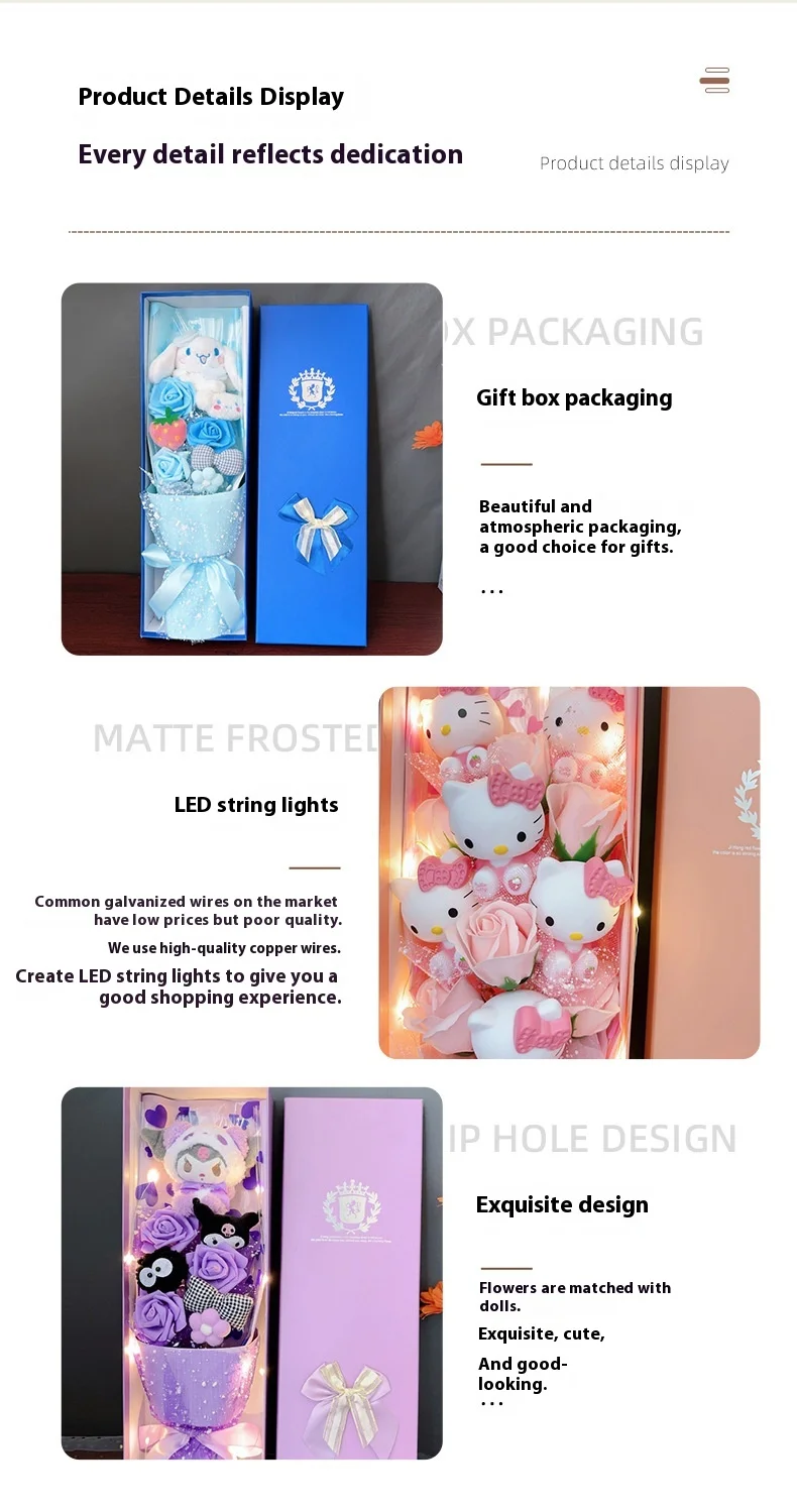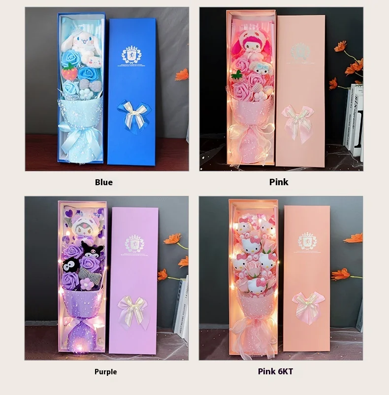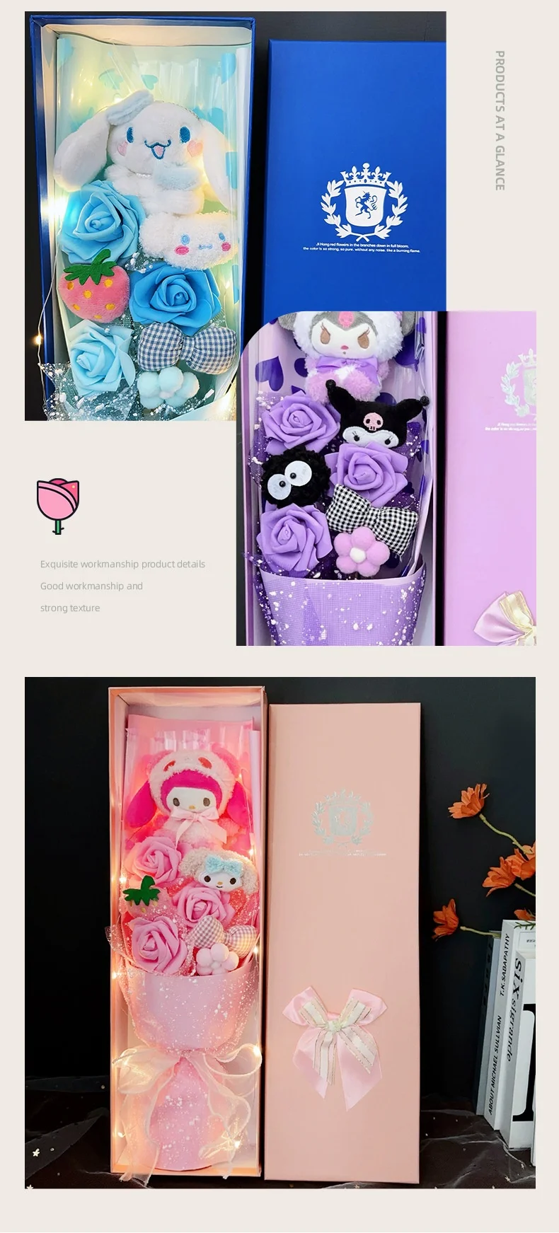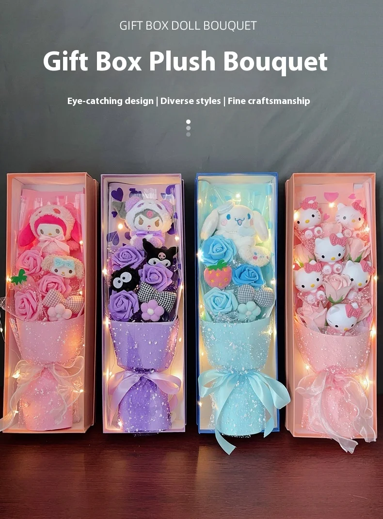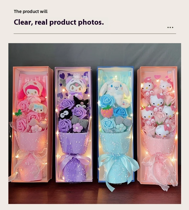Sanrio Hello Kitty Plush Bouquet – Kawaii Stuffed Doll & Rose Flower Gift Box for Birthdays & Christmas!