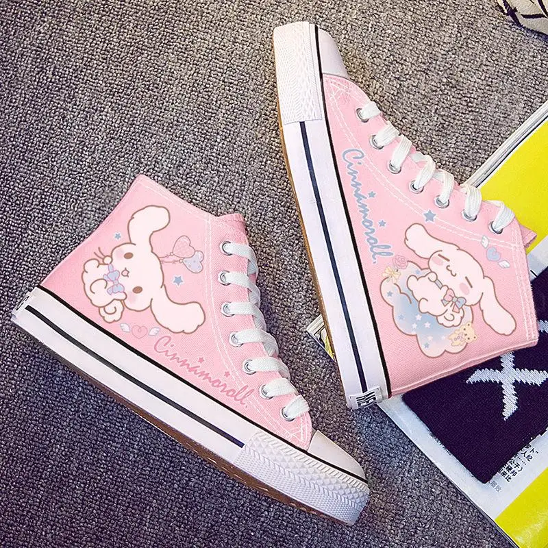 Sanrioed Cute Cinnamoroll Canvas Shoes Women 2024 New Cartoon Kuromi Versatile Board Shoes Kawaii Hello Kitty Shoes for Women