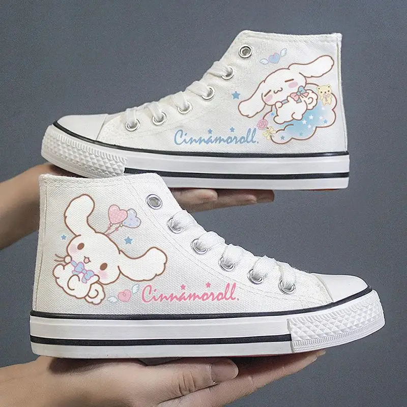 Sanrio Cute Cinnamoroll Canvas Shoes Women 2024 New Cartoon Kuromi Versatile Board Shoes Kawaii Hello Kitty Shoes for Women